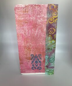 This journal contains a variety of paper to add both tactile and visual interest. The journal measures 8.25L x 4.25W, has a cloth spine, and rubber band closure.
