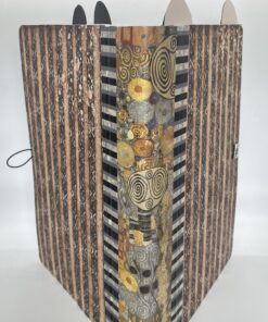 This journal proudly displays a tab at the top of four dividers, increasing the original 9.75″ height to approximately 10.5″. The pockets on the front and back covers contain journaling tags and other mini writing pads. This journal can be used to track household tasks, respond to prompts, and to have in easy reach for processing just about any idea or problem.